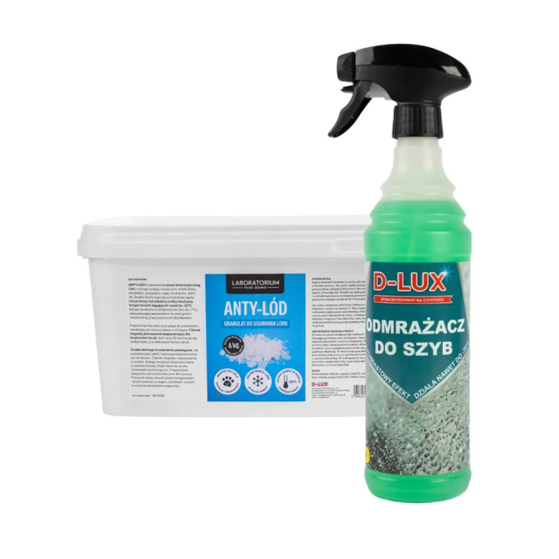 Zestaw zimowych preparatów D-LUX – Anty-Lód i Odmrażacz do szyb.