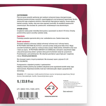 Środek o pH 0,5 – 1 jest przeznaczony do czyszczenia powierzchni ceramicznych. Nie należy go używać do czyszczenia armatury - kranu, prysznica czyli do powierzchni emaliowanych oraz aluminiowych i wrażliwych na kwasy.