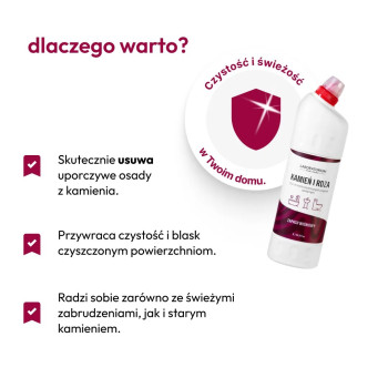 Jego działanie pozwoli Ci w kilkanaście minut pozbyć się kamienia w łazience. Ważne, żeby przy jego użyciu uważać na siebie oraz na fugi (do ich czyszczenia polecamy inny nasz produkt) - siła tego roztworu działa ale najlepiej wtedy gdy używasz go świadomie i OSTROŻNIE!