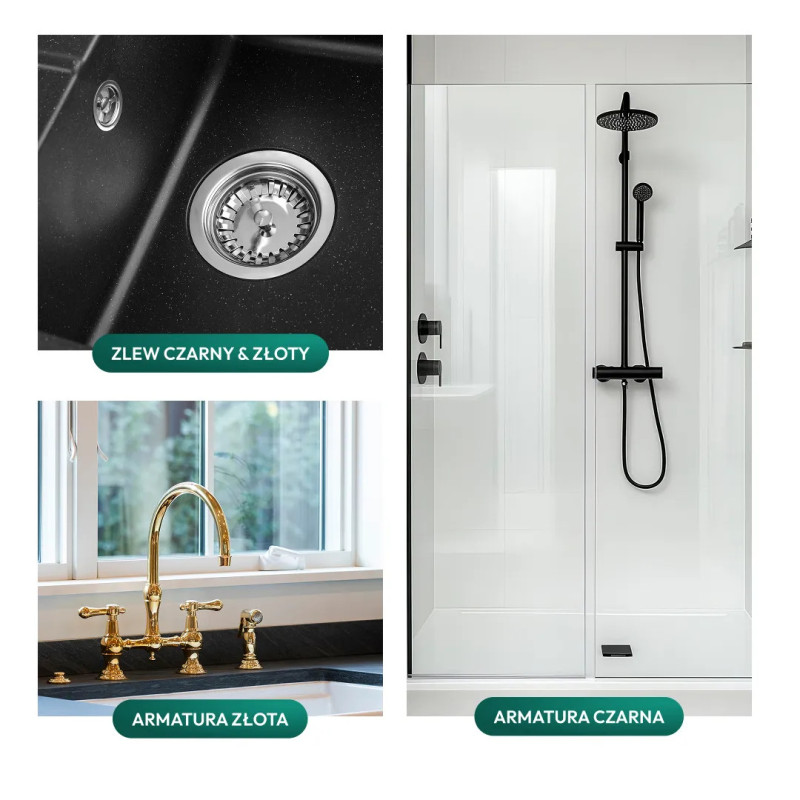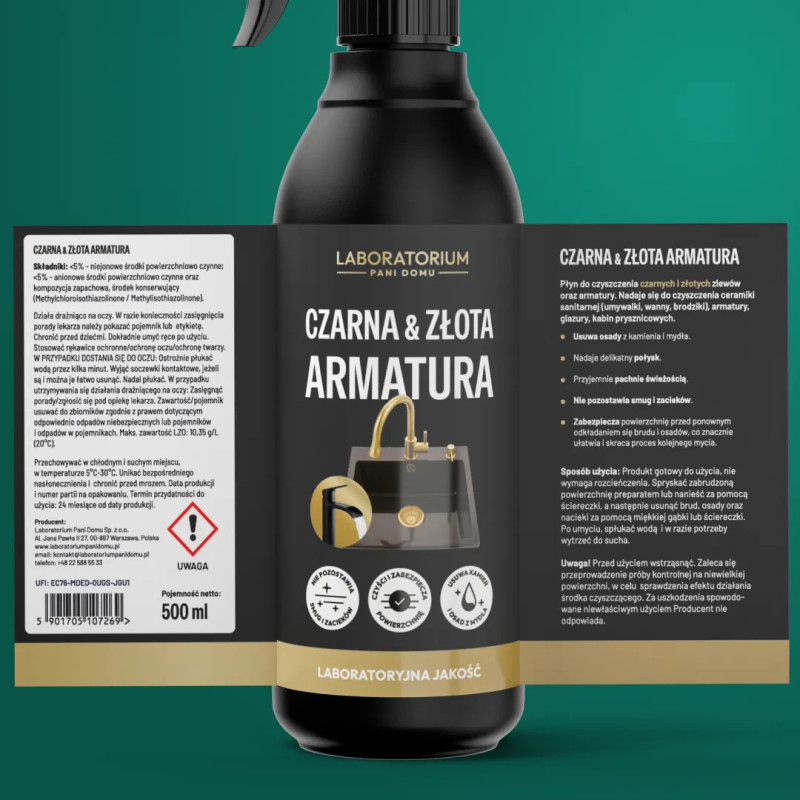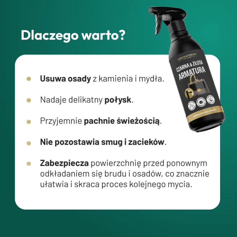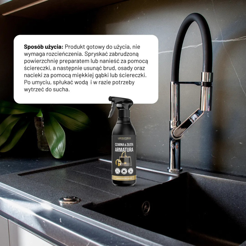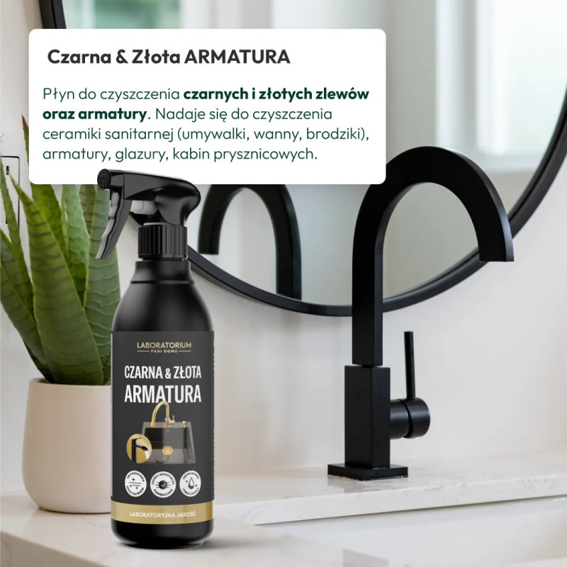 Idealny wybór do codziennej pielęgnacji czarnej i złotej armatury, pozwalający zachować jej elegancki wygląd na dłużej.