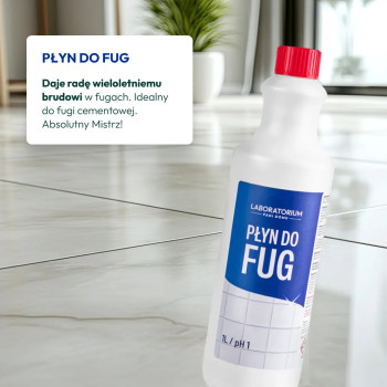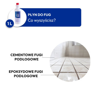 Piękna, czysta podłoga? Robi się! Ale co z fugami? Zazwyczaj środki do mycia podłóg usuwają skutecznie zanieczyszczenia z płytek, jednak pozostawiają brud na fugach. Z uwagi na ich wklęsłość oraz porowatą strukturę mogą się w nich gromadzić nie tylko zanieczyszczenia, ale też pleśń czy inne rodzaje grzybów. Nasz płyn do czyszczenia fug, skutecznie usuwa zabrudzenia, zarazki i przywraca fugom nieskazitelny wygląd, bez konieczności szorowania!