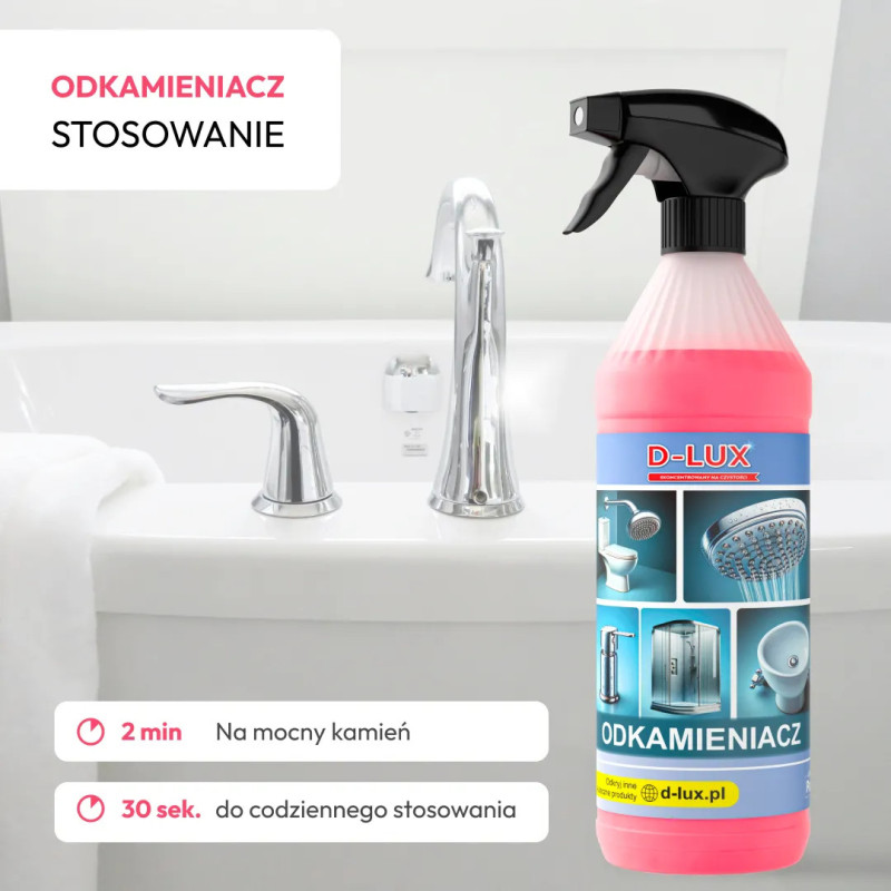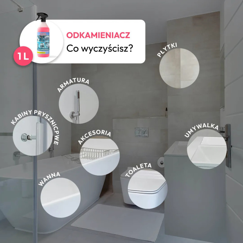 - skutecznie czyści armaturę i powierzchnie łazienkowe,