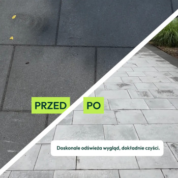 Co wyróżnia nasz produkt spośród innych to jego skoncentrowana formuła dwufazowa. Dzięki temu preparat jest wydajny i zapewnia doskonałe rezultaty czyszczenia. Wystarczy go wstrząsnąć i odpowiednio rozcieńczyć z wodą, a następnie zastosować na powierzchnię kostki brukowej. W efekcie z łatwością usuniesz uporczywe zabrudzenia i przywrócisz kostce jej pierwotny blask.