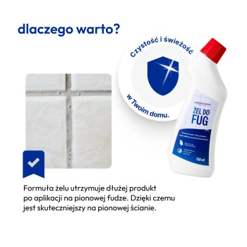 Żel do czyszczenia fug to skuteczny i szybki sposób na pozbycie się zabrudzeń między płytkami. Gęsta konsystencja pozwala na stosowanie na powierzchniach pionowych, co czyni go idealnym środkiem do czyszczenia fug na ścianach w łazienkach, kuchniach i innych wilgotnych pomieszczeniach.