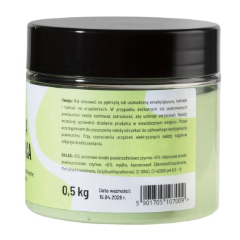 Uniwersalna pasta czyszcząca do powierzchni wrażliwych, idealna do kuchni indukcyjnych, emaliowanych, ceramicznych i szklanych. Skutecznie usuwa trudne zabrudzenia, osady wapienne i tzw. „wżery” bez ryzyka zarysowań. Doskonała do czyszczenia zlewozmywaków, garnków, patelni, mebli ogrodowych, grzejników, ramek okiennych, parapetów czy rusztów i grilli. Pozostawia powierzchnie lśniące, bez smug i z przyjemnym zapachem. Idealna do codziennego użytku – bezpieczna i wydajna pasta do czyszczenia kuchni i łazienki.
