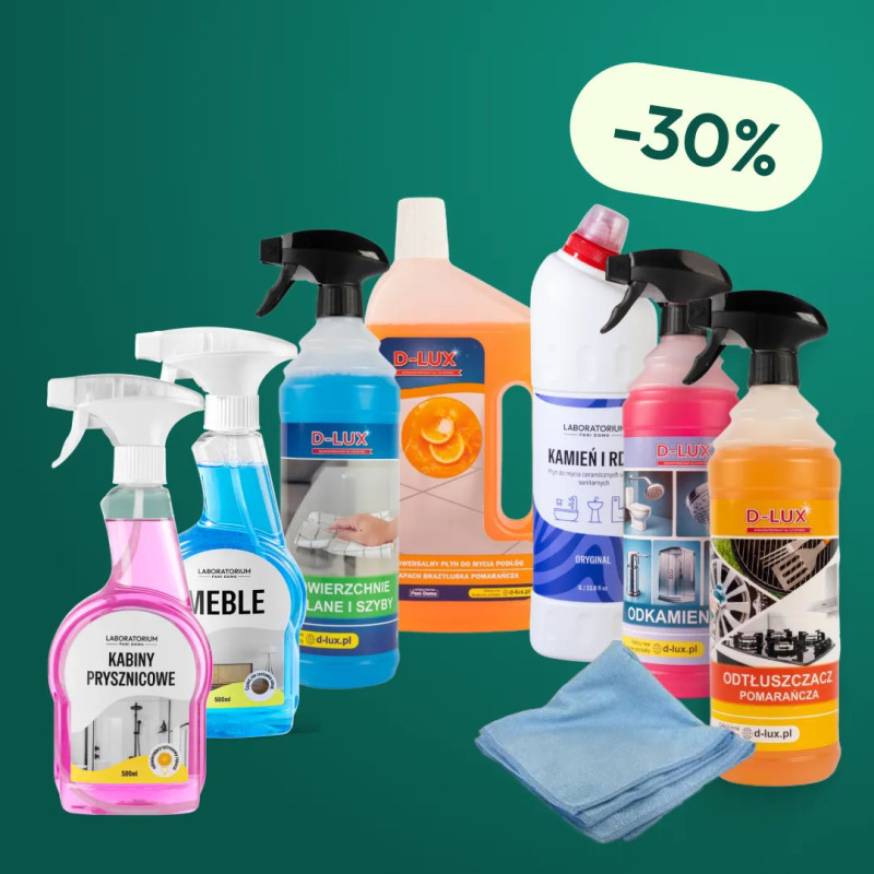 Wybraliśmy produkty najczęściej kupowane w naszym Laboratorium w okresie jesiennym. Tysiące pozytywnych opinii klientów przesądziły o wyborze. Wyjątkowy rabat, aż 30% dlatego, że zestaw jest duży, ale przez wiele tygodni, a nawet miesięcy pomoże w dbaniu o dom. W zestawie jest 8 doskonałych produktów o spektakularnym działaniu. Oszczędzaj czas i siły, stosując Laboratoryjnie opracowane receptury. Sprawdź!