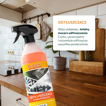 Idealny do usuwania tłuszczu, plam i uporczywych zabrudzeń i czyszczenia różnych powierzchni. Nasz uniwersalny odtłuszczacz śpiewająco sprawdzi się zarówno w kuchni, jak i w warsztacie. Doskonale doczyszcza zabrudzone piekarniki, okapy, mikrofalówki, płyty grzewcze, kuchenki gazowe, zlewy, meble kuchenne oraz kafelki, usuwa plamy z tkanin, także roboczych.