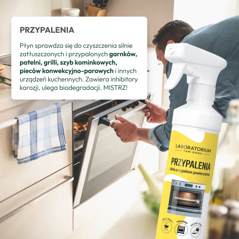 Czy straciliście już wiarę, że Wasz grill będzie jeszcze miał błyszczący ruszt? Albo, że ulubiony zestaw garnków może jeszcze lśnić jak nowy? Macie dość ciągłego czyszczenia płyt indukcyjnych, na których i tak zostaje przypalone kółko? Lub czyszczenia piekarników, które są błyszczące zadaje się tylko raz, przed pierwszym użyciem? Tworzymy produkty do pielęgnacji ale i do wymagających zadań i mamy sposób aby Wasze marzenia o znikających przypaleniach stały się rzeczywistością! Płyn Przypalenia sprawdza się do czyszczenia silnie zatłuszczonych i przypalonych garnków, patelni, grilli, szyb kominkowych, pieców konwekcyjno-parowych i innych urządzeń kuchennych. Zawiera inhibitory korozji, ulega biodegradacji.
